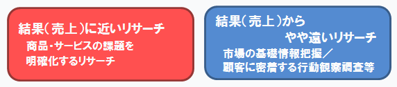 それに対して、『商品・サービスの課題を明確化するマーケティング・リサーチ』は、その後の改善アクションがしやすく、結果(売上)に近いリサーチとなります。