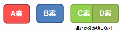また、A案、B案、C案、D案と4つ作ったのはいいとして、A案とB案は方向性が明確なのに、C案とD案がわずかな違いしかなく、「要素の分離・分解」が不十分になってしまうと結果もクリアーになりません。