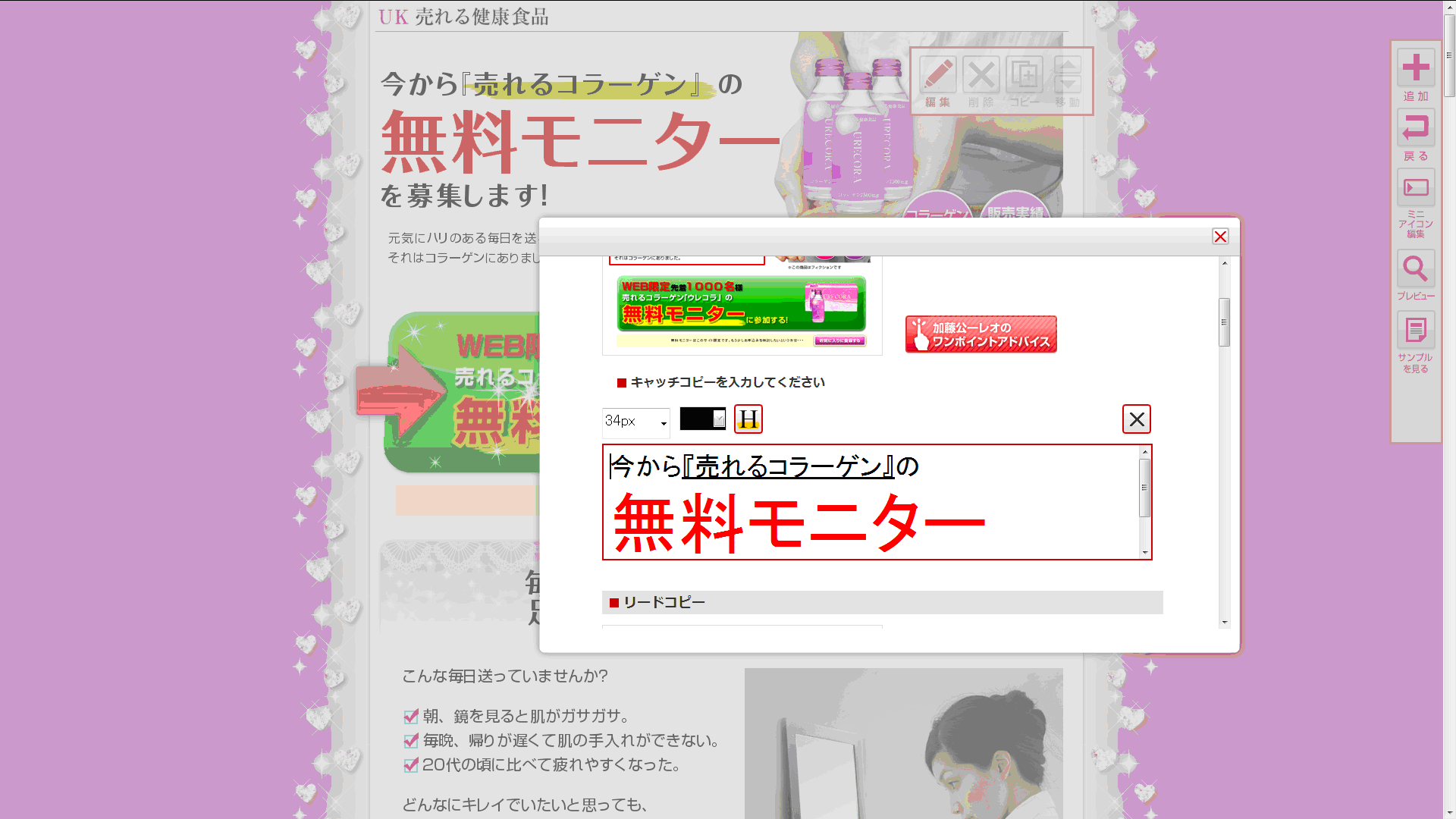 専門的な知識が一切なくても“ブログを書くような感覚”で、簡単にレスポンスを上げるためのランディングページ制作から、引上・リピートを上げるためのフォローメール配信までを簡単に実施することができる。