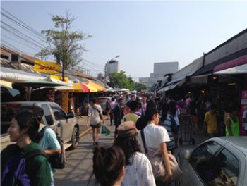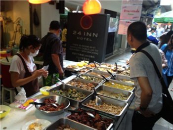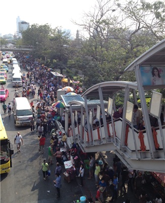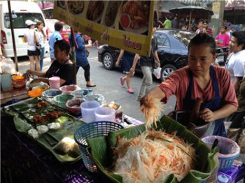 最も小規模な商業施設である屋台や露店も街の至る所で目にすることができます。1食あたり40~100バーツという低価格で食事ができる屋台は、中間層 にとっても重要な場所です。タイ人の多くは食事を外食で済ませることが多いので、彼らにとって屋台は日常のダイニングという訳です。私も弊社のタイ人ス タッフが朝や昼に屋台で弁当を買い、オフィスで食事をしている姿をよく見かけます。