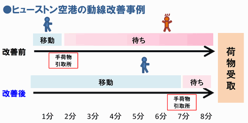 似た事例として、ヒューストン空港では、手荷物引渡所(Baggage Claim)での「荷物受取までの待ち時間が長い」とのクレームが多く寄せられたそうです。そのためわずかでも時間短縮をする改善が実施されましたが、クレームは以前同様です。