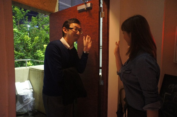 客:「初めまして、私は“電博堂”の福本と言います。今日は知り合いに紹介してもらって来ました。」