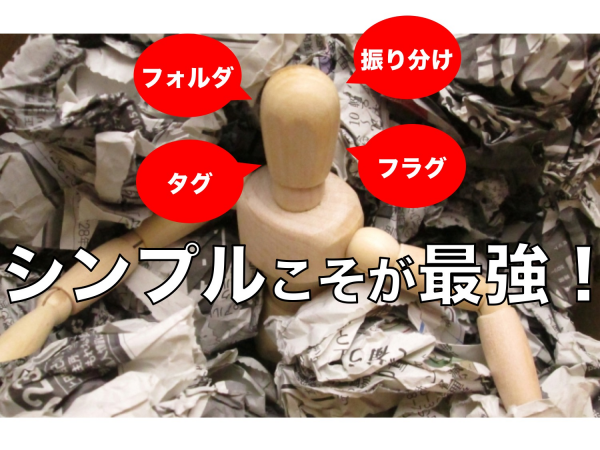 メールやTODOを管理する便利なツールは多い。社員の中にも、振り分け設定、フォルダ分け、フラグ付け、アーカイブ、検索条件保存、タグ付けなど様々な機能を駆使している者がいたが、そんなものはぶっちゃけ一切必要ない!ハッキリ言っておくが、そんな細々した設定は時間のムダだ。