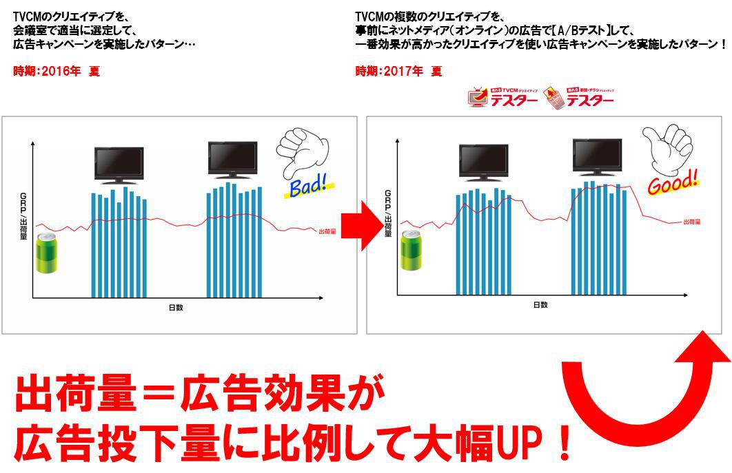 いずれにしても、会議室で適当に選定した運任せの水物のTVCMクリエイティブに数億円・数十億円・数百億円を投資する方が絶対に無駄金だ。TVCMでも絶対に事前にネットメディア(オンライン)上で広告クリエイティブの【A/Bテスト】をするべきだ!